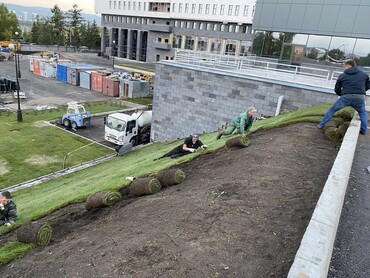 - Устройство газонов (рулонный, сеяный), цветников альпинариев;