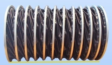 Легкий гофрированный рукав из термоcтойкого ПВХ материала на тканевой основе, армирован зажимной профильной спиралью.
